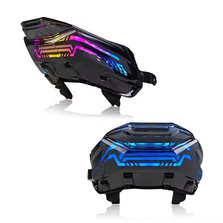 دارای نور سهحالته (سفید، آبی، قرمز) و راهنمای داینامیک (Flowing Turn Signal) است که جلوهای خاص و حرفهای به ظاهر موتور میبخشد.